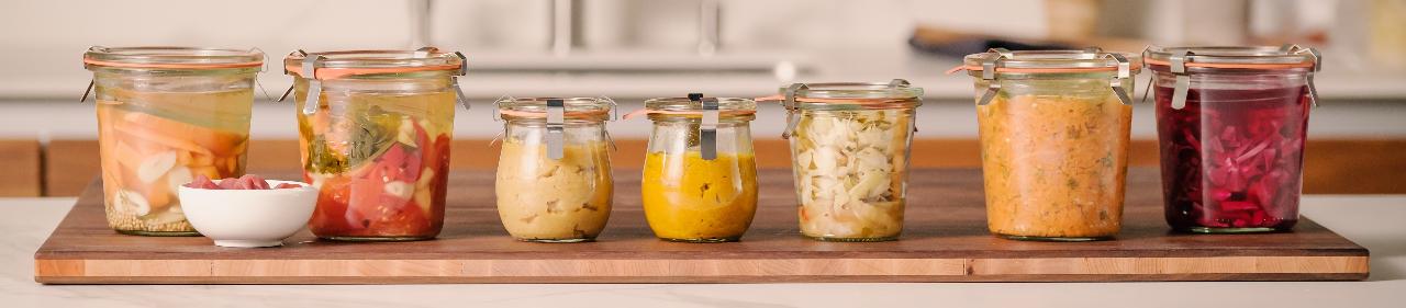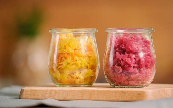 Sauerkraut, Kimchi oder einfach bunte Mischungen aus Kohl, Karotten, Roter Bete oder Radieschen. Beim Fermentieren sorgen natürliche Milchsäure-bakterien dafür, dass das Gemüse nicht nur lange haltbar bleibt, sondern auch noch gesünder wird: reich an Vitaminen, Ballaststoffen und pro-biotischen Kulturen für die Darmgesundheit.