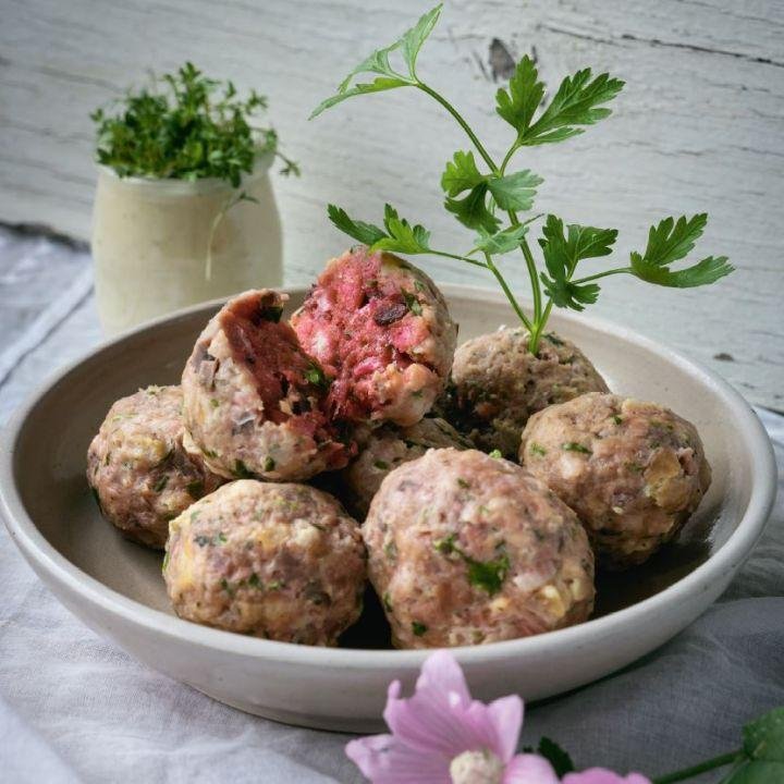Rote Bete Knödel mit Meerrettichsoße