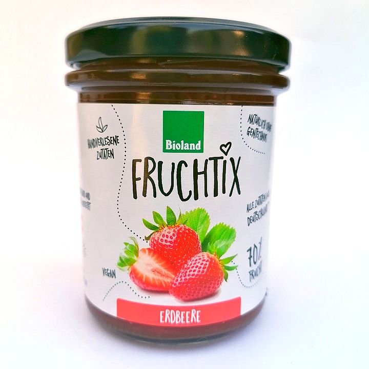 70% Frucht: Erdbeeren**, Rübenzucker**, Zitronensaft*, Geliermittel Apfelpektin