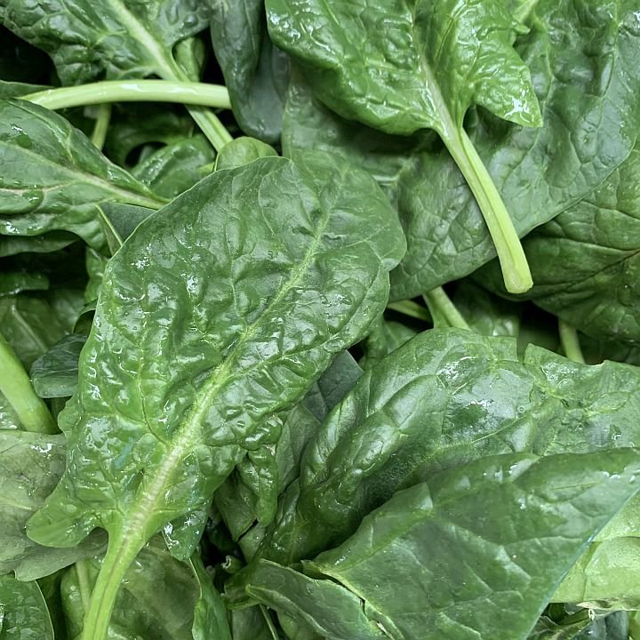 Eine zarte Spinatblättchen. 100 Gramm frischer Spinat enthalten durchschnittliche 3,5 Milligramm Eisen. Seine zarten Blätter eigenen sich hervorragend zum Vermischen mit anderen Salaten.