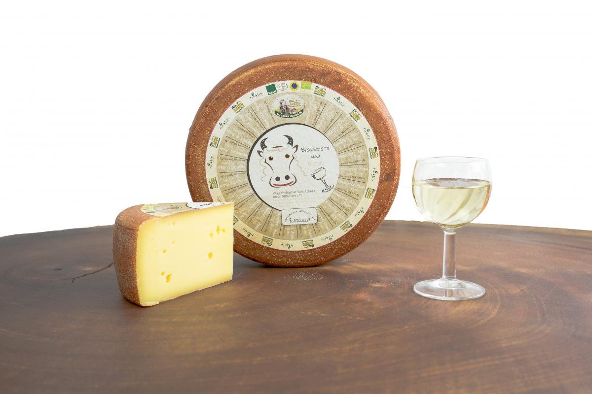 Die beschwipste Anna Blond ist einzigartig, sowohl im Aussehen als auch im Geschmack. Sie ist ein besonderer Blickfang in jeder Käsetheke. Die beschwipste Anna in Blond, die lieblich und zugleich tiefgründig auftritt, wird aus reiner Allgäuer Bio-Heumilch auf traditionelle handwerkliche Art und Weise hergestellt. Während der 8 wöchigen Reifezeit im Naturziegelkeller wird der Käse mindestens 2 x wöchentlich mit Bio-Weißwein vom Weingut Rinklin affiniert. Dadurch bekommt der Käse seine typisch gelbliche, leicht bräunliche Naturrinde.